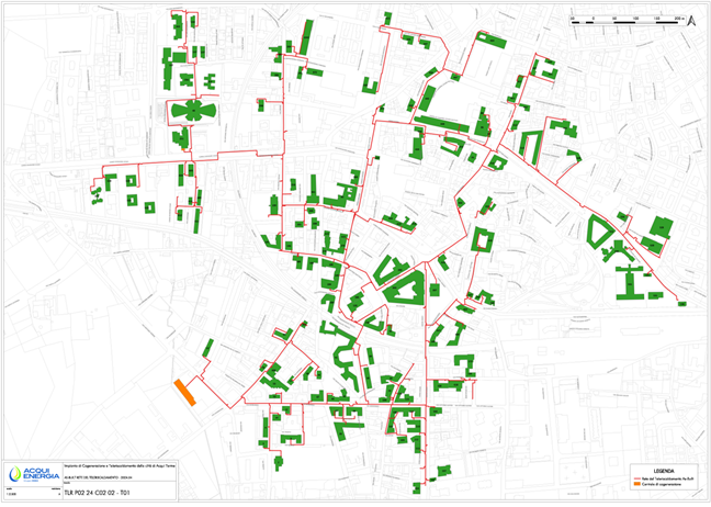 Current DH status: Acqui Terme’s DHC system started to operate in 2009 and it was expanded in 2012, reaching the current 8.9km of extension. It is managed by Acqui Energia S.p.A. Today, the network has two CHP units and three boilers, used as backup. In 2023, it generated 34.8 GWh of thermal energy, using natural gas as the main energy source. Because of its reliance on fossil fuel, the network generated 11.500 tonnes of CO₂.