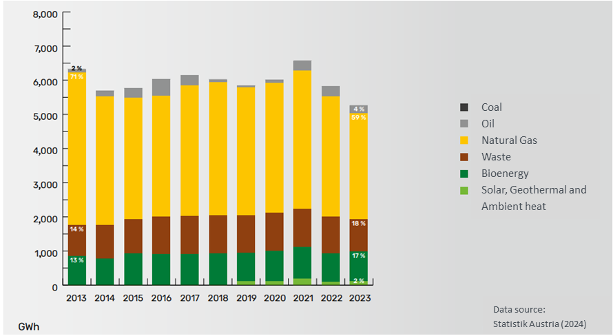 Current DH system: Vienna district heating system supplies heat to more than 460.000 residences and 6.800 tertiary customers, through more than 1.300km of pipelines. It has a maximum capacity of 3.1 GW and supplies 6,000 GWh of heat per year. The DH system amounts to around 30% of the total heat demand in Vienna.